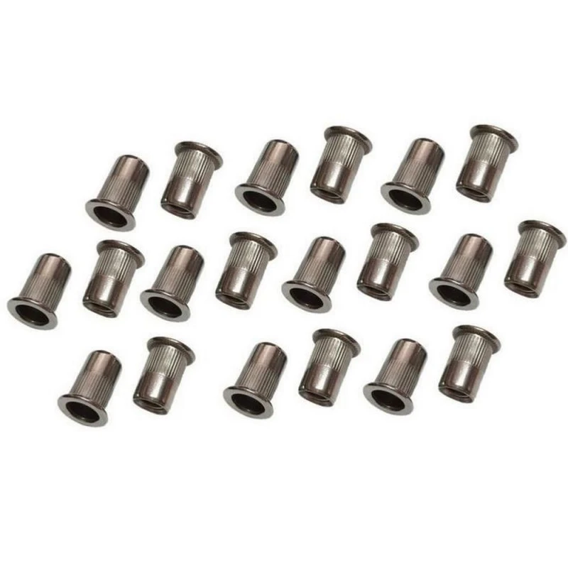 Lot de 50 inserts filetĂ©s acier inox A2 Ă tĂȘte plate assortis de Ă 3 Ă Ă 8 mm.