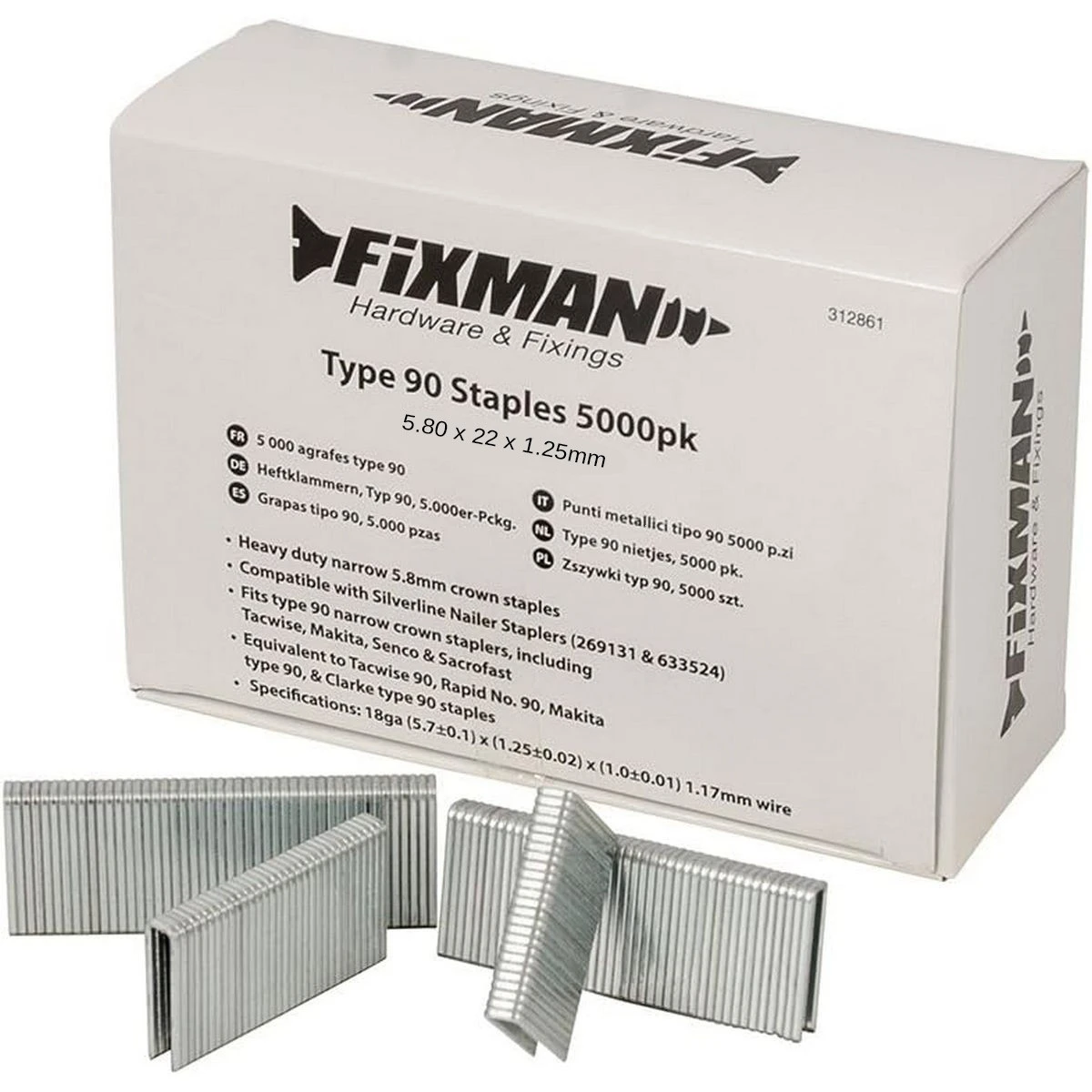 Compatible avec les agrafeuses à couronne étroite type 90 dont Tacwise, Makita, Senco et Sacrofast.