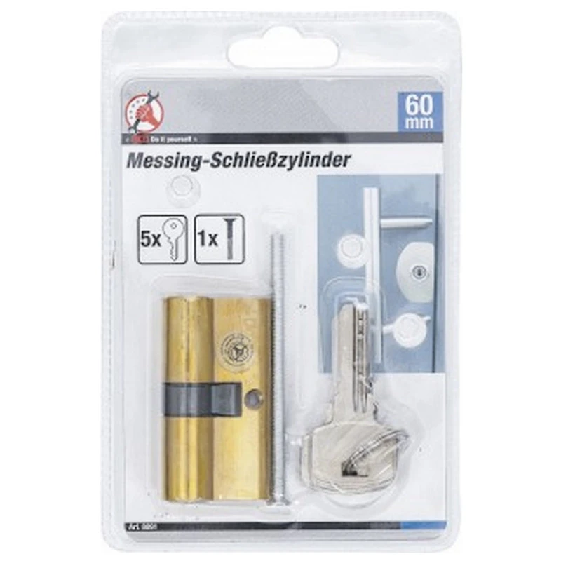 BARILLET 30/30 Mm CYLINDRE DE SERRURE 60 MM EN LAITON AVEC 5 CLES