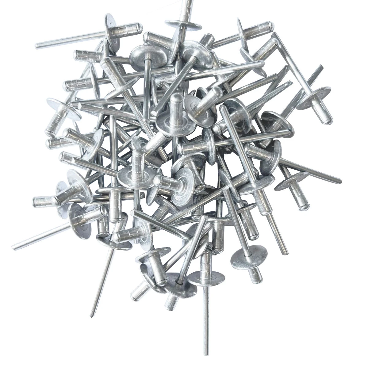 Lot de 250 rivets à tête extra Large (16mm) en alu acier de type « multigrip » de 4.8 X 11 conçu pour serrer de 1 jusqu’à 6 mm d’épaisseur.