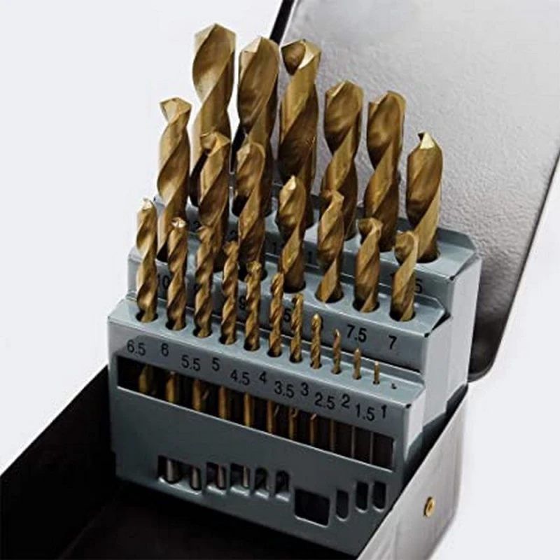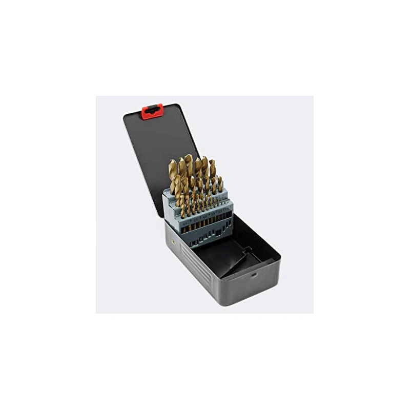 Coffret de 25 forets hélicoïdaux en acier HSS de 1 à 13 mm – Affûtage en croix.
