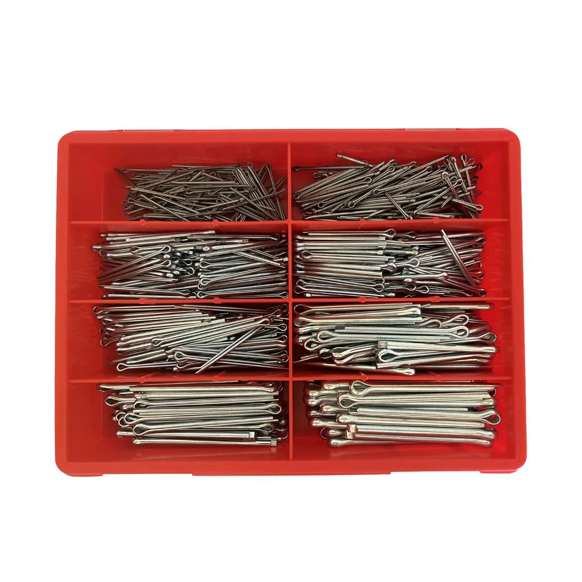 Assortiment de 555 goupilles fendues en 8 dimensions.