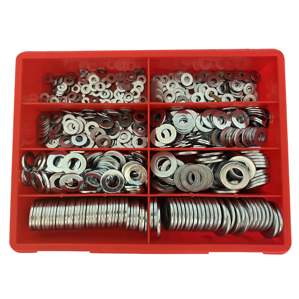 Assortiment de 590 rondelles plates en 8 dimensions.