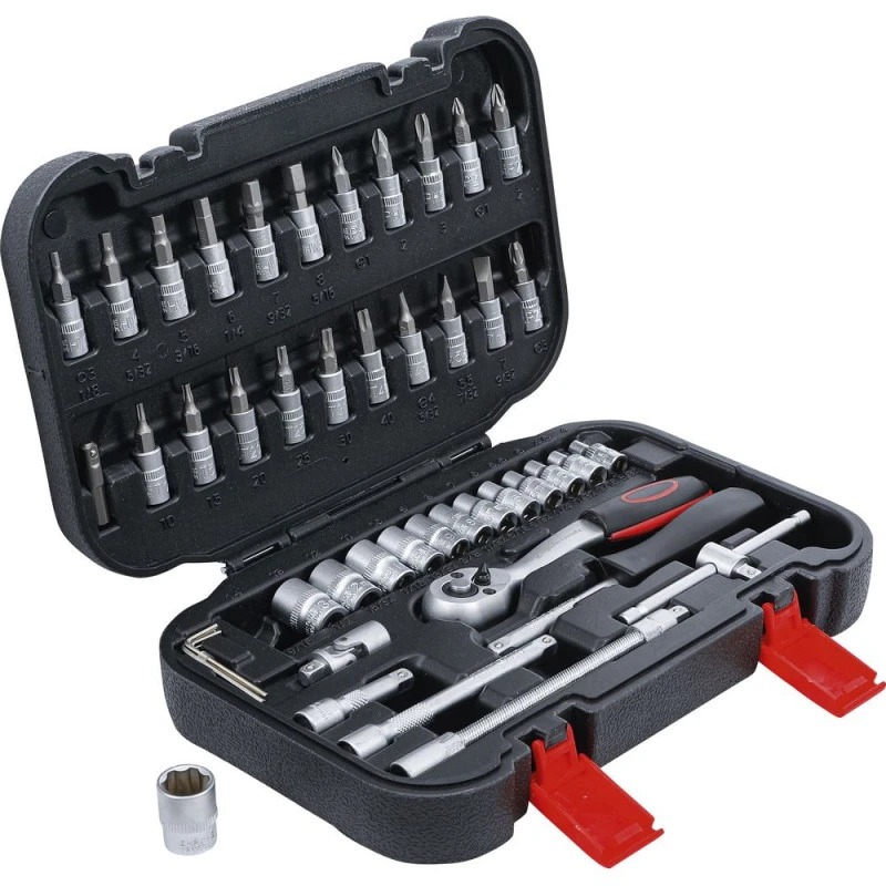 Mallette d’outillage de qualité BGS, d’embouts et douilles 1/4″ en acier chrome-vanadium.