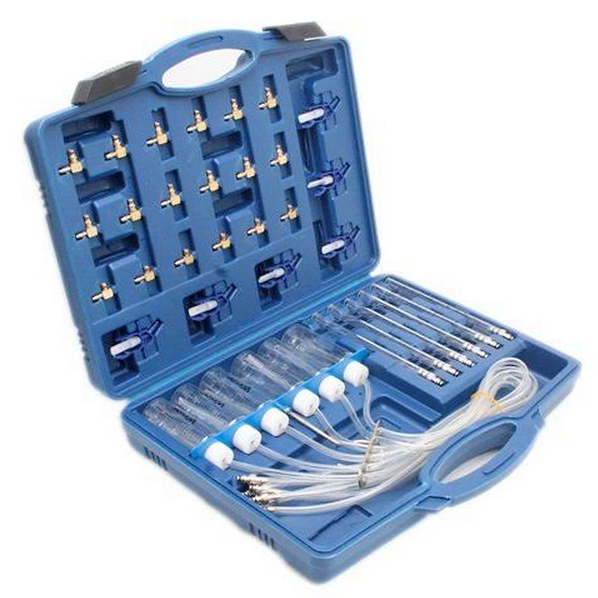 - Convient pour la majorité des fabricants d’injecteurs : avec 24 adaptateurs pour Denso C3, C1, Siemens C3, Delphi, Bosch pour un branchement aisé sur le circuit de retour basse pression.