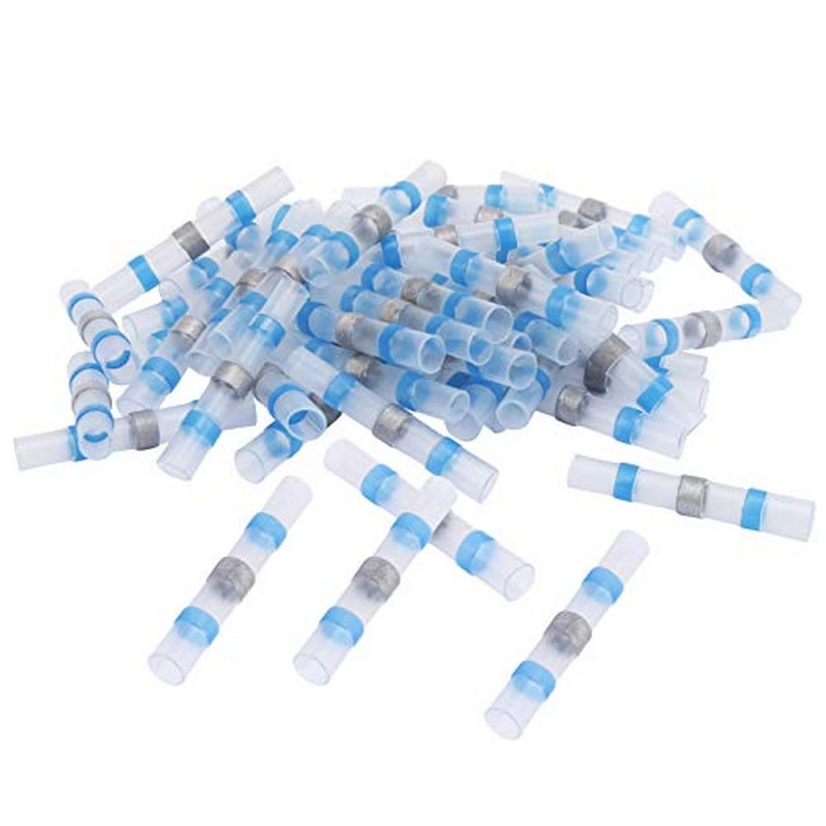 Manchons prolongateurs thermorétractables bleues avec soudure et résine d’étanchéité.