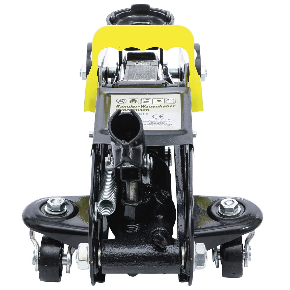 Puissant cric roulant, avec structure stable en acier et pompe à manivelle, facile à manœuvrer et à transporter.