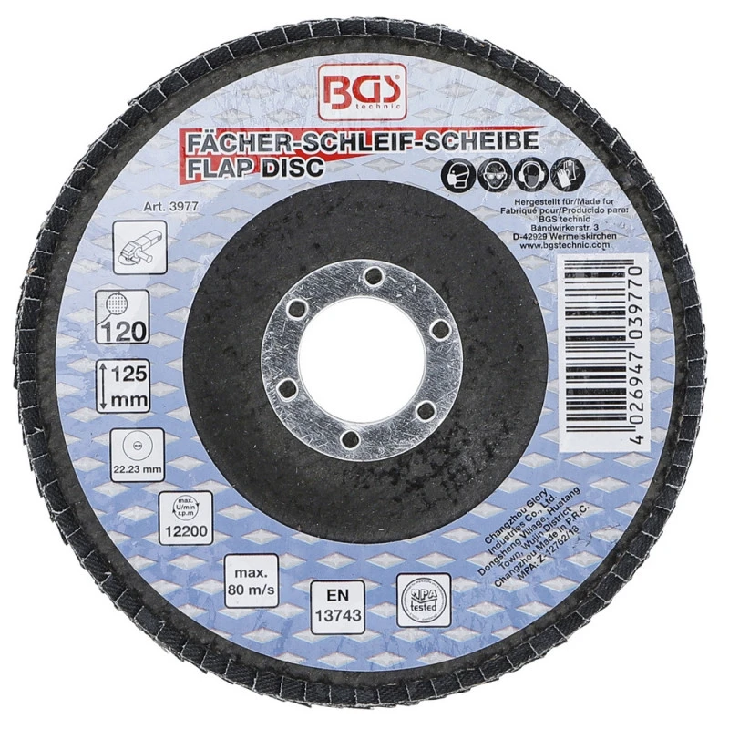 Disque à lamelles Ø 125 mm – 22 mm – grain de 120 – BGS Technic.