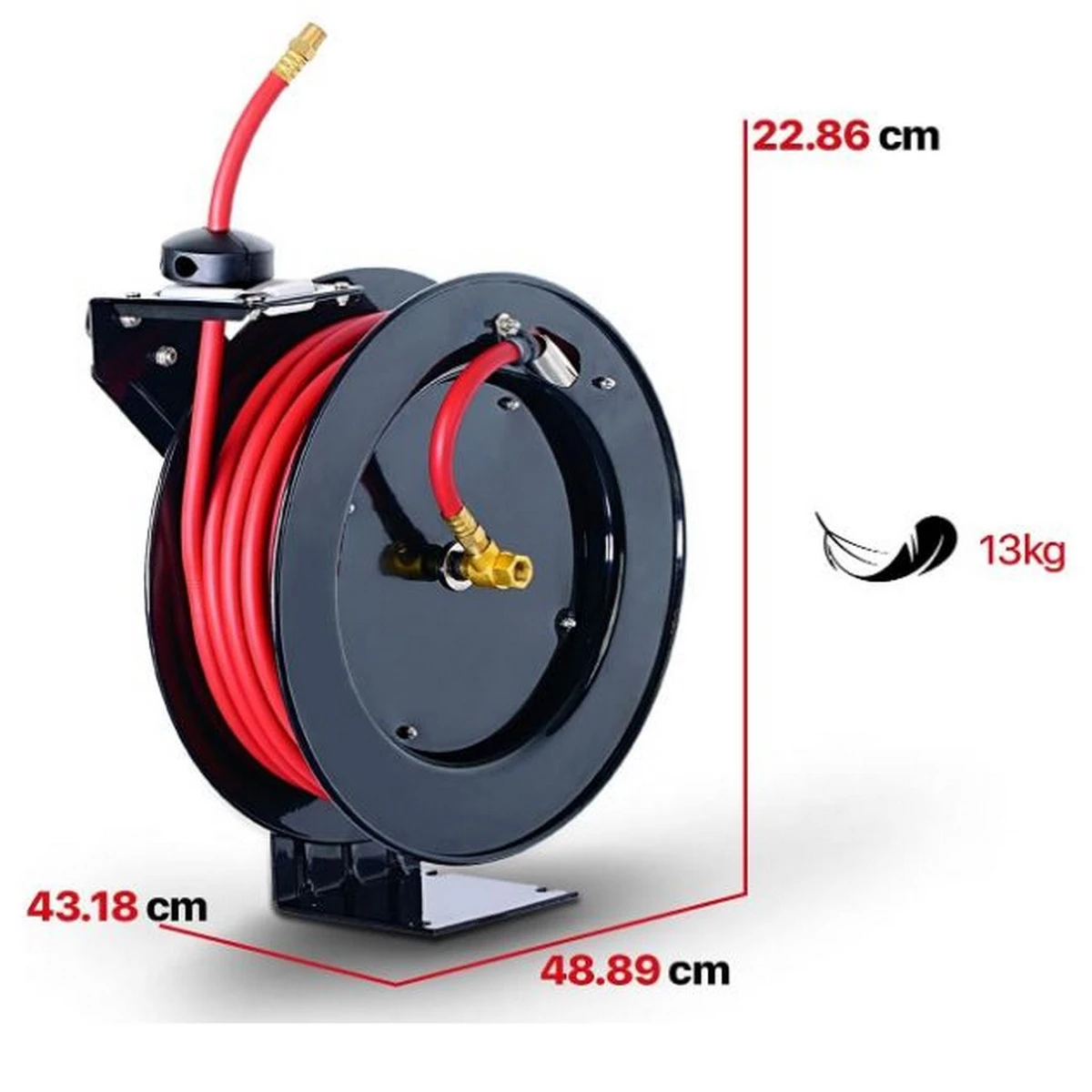 Enrouleur automatique – Avec tuyau rétractable 9.5 mm (3/8″) x 20 m (65′) pour air comprimé et eau.