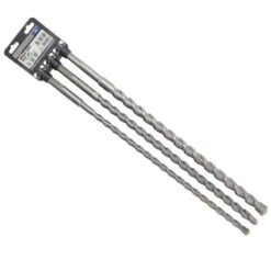 Lot de 3 forets en carbure de tungstène SDS-MAX de 600 mm – Ø 16 mm, Ø 20 mm, Ø 26 mm