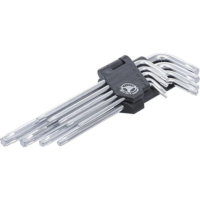 Ensemble de 9 clés mâles profil Torx de dimensions : T10, T15, T20, T25, T30, T40, T45 et T50.