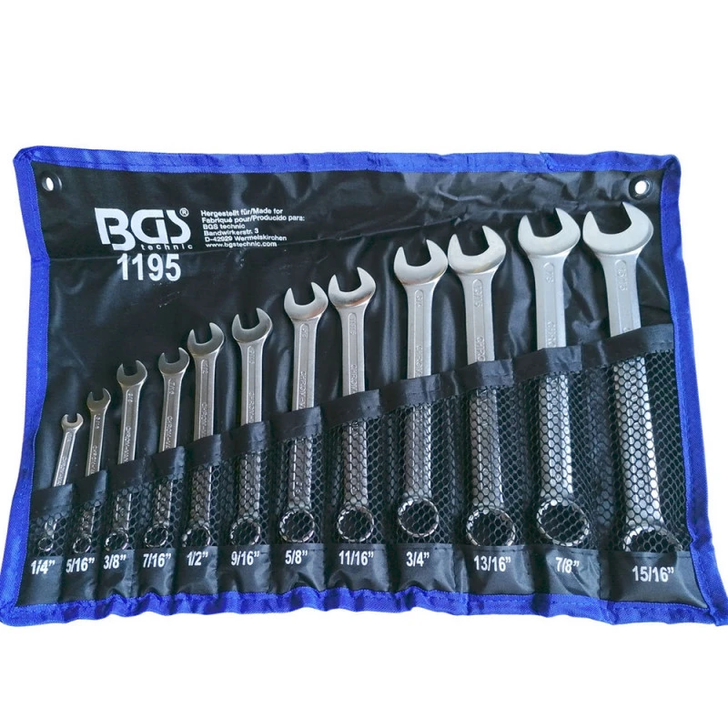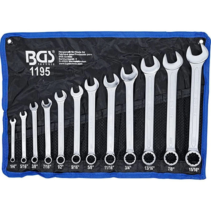 Assortiment de clés mixtes côtes pouces de qualité BGS en acier chrome-vanadium.
