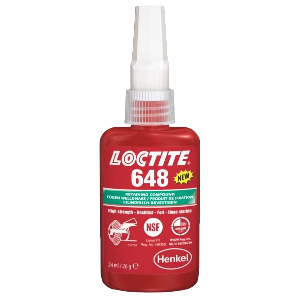 LOCTITE 648 est un produit de fixation acrylique uréthane méthacrylate haute résistance, anaérobie, de faible viscosité, vert, fluorescent, conçu pour le collage de pièces cylindriques conçues pour s’assembler entre elles.