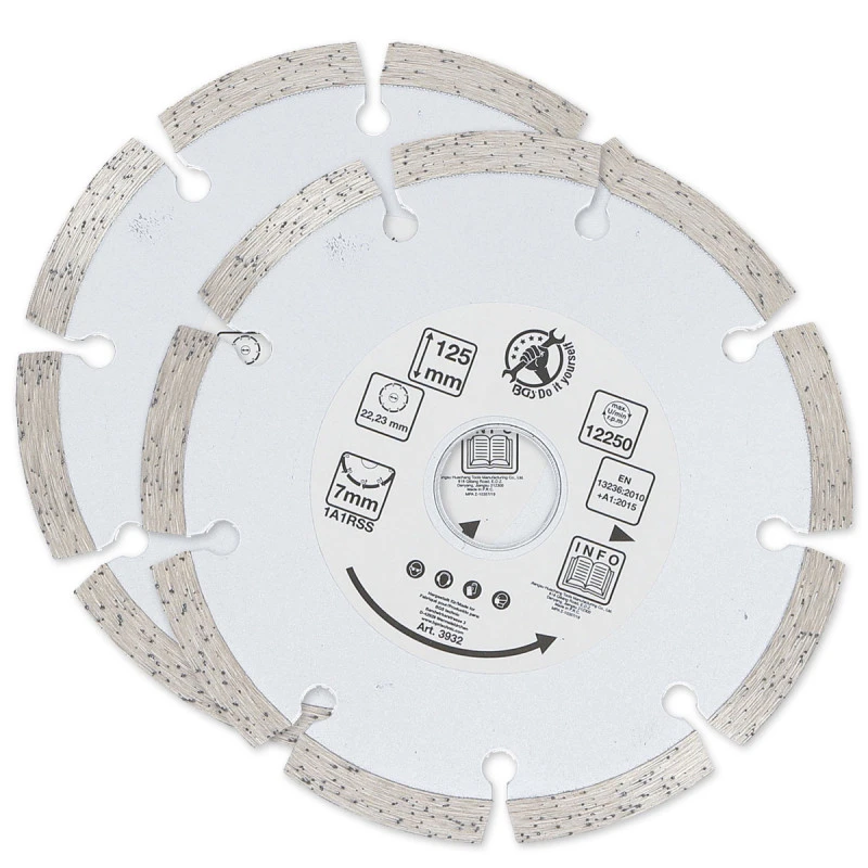 2 disques à tronçonner diamant et à segment Ø 125 mm.