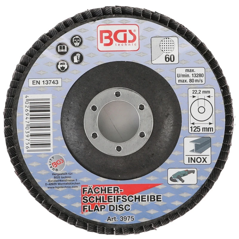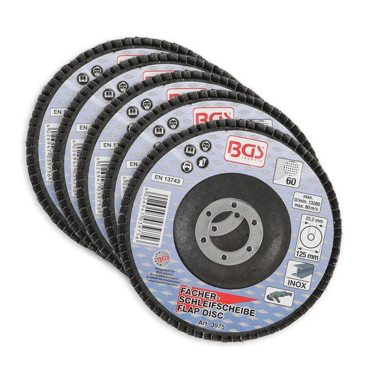 5 Disques à lamelles Ø 125 mm – 22 mm – grain de 60 – BGS Technic.