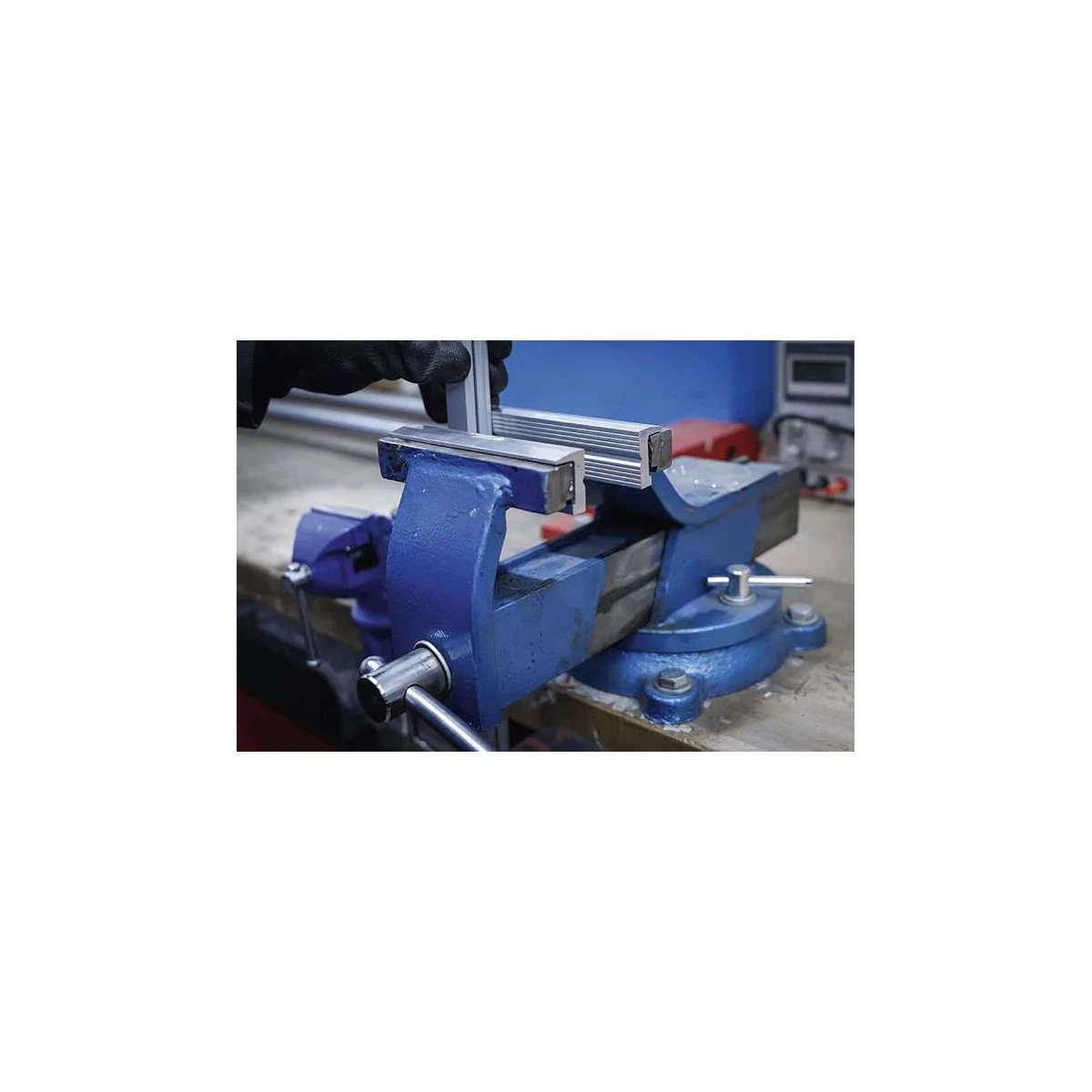 - La mâchoire de protection adhère à l’étau au moyen de la barre magnétique intégrée.