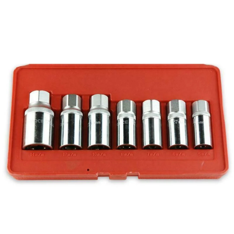 Ensemble de 7 extracteurs à rouleaux en acier chrome-vanadium .Dimensions : 5, 6, 7, 8, 10, 12 et 14 mm.