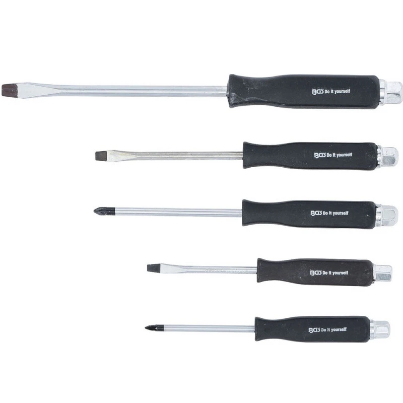 Lot de 5 tournevis – 2 tournevis Pozidriv et 3 tournevis plats.