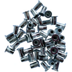 Sachet de 50 inserts filetés à sertir de Ø 4 mm en acier galvanisé.
