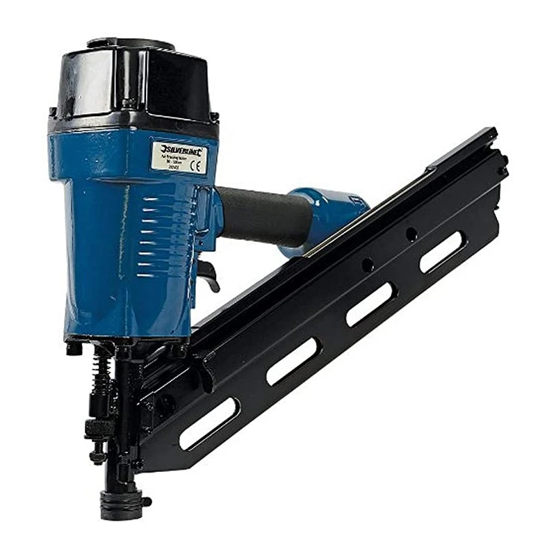 Cloueur pour clous à tête tronquée de 50-90 mm reliés sur bande à 34°.