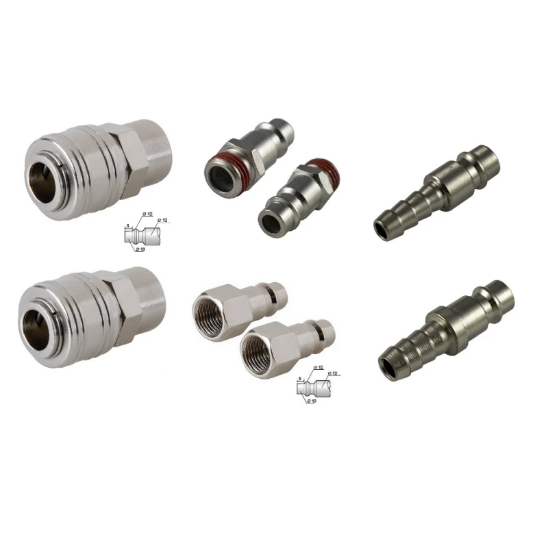 Assortiment de 8 embouts et raccords pneumatiques de type Euro.