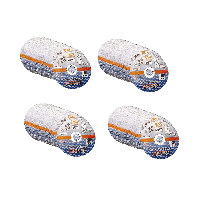 Lot de 100 disques à tronçonner 125 x 22 x 1.0 mm très fins pour couper les aciers inoxydables et tous les autres aciers avec le minimum d’énergie et de très faibles bavures.