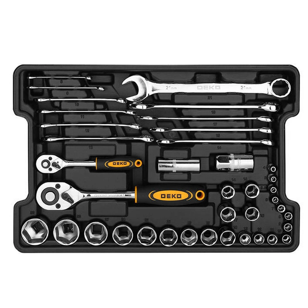 - 13 douilles 1/2″ : 14 / 15 / 16 / 17 / 18 / 19 / 20 / 21 / 22 / 24 / 27 / 30 / 32 mm